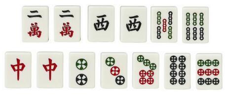 一副完整的麻将,除了麻将牌以外,还应该备有郑点用的一对骰子,规格为边长1~1.5厘米的立方实心体,多为有机玻璃制成。上面刻有1-6个点数。风圈仪是用来指示风圈的,上面刻有东、南、西、北字样,是一个可以旋转的圆型指示盘(也有用四个小牌子代替,上面同样刻有东、南、西、北字样,用以记圈)。筹码是用来计番(分)的,其材料有金属的,也有塑料的,形状、颜色、个数及其所代表的番(分)数各不相同。也有用扑克牌代替的。正规比赛使用专门的记分卡,1998年7月,经国家体育总局审定出台的(中国麻将竞赛规则)试行,简称(新规则),规定记分卡的分值分别为1、8、10、50、100分。