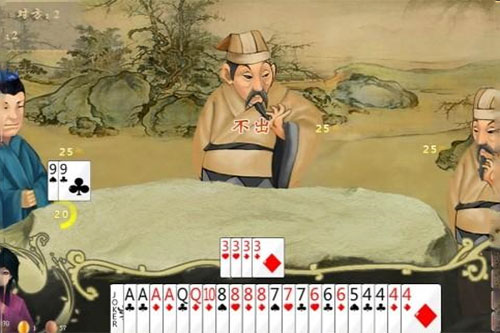 这一点其实和让玩家在进贡的时候提防同花是一个道理。如果没有办法判断花色就首选红桃,因为红桃的同花有可能会用掉逢人配,对方的牌力增强有限。