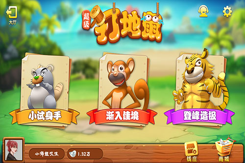 根据玩家的积分总额,玩家可以分别进入不同等级的房间进行打地鼠的游戏。在进入房间之后,玩家只需要选定相应规格的锤子瞄准自己想要攻击的地鼠,不断地点击屏幕,进行攻击即可。一旦玩家成功击获,就可以获得相应倍率的积分奖励。