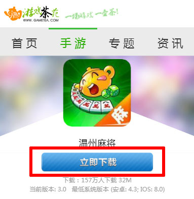 4、点击下载页面(https://wap.gametea.com/mobile/detail/49)中的【立即下载】按钮,系统会根据您手机的系统自动分配安卓包或者苹果包提供下载。